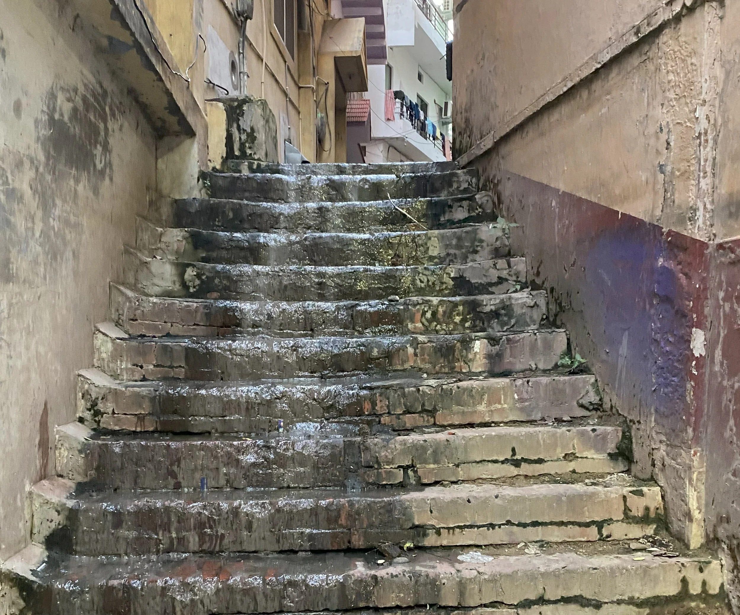 The group broke up at the main road. I decided to have a look at the women’s toilet. There was not much gap between the men’s and women’s sections. It was a no-pay toilet, unlike the community toilet complexes where there were fixed fees for bathing and for toilet use. The stench had already begun to affect me when a man reached towards me.