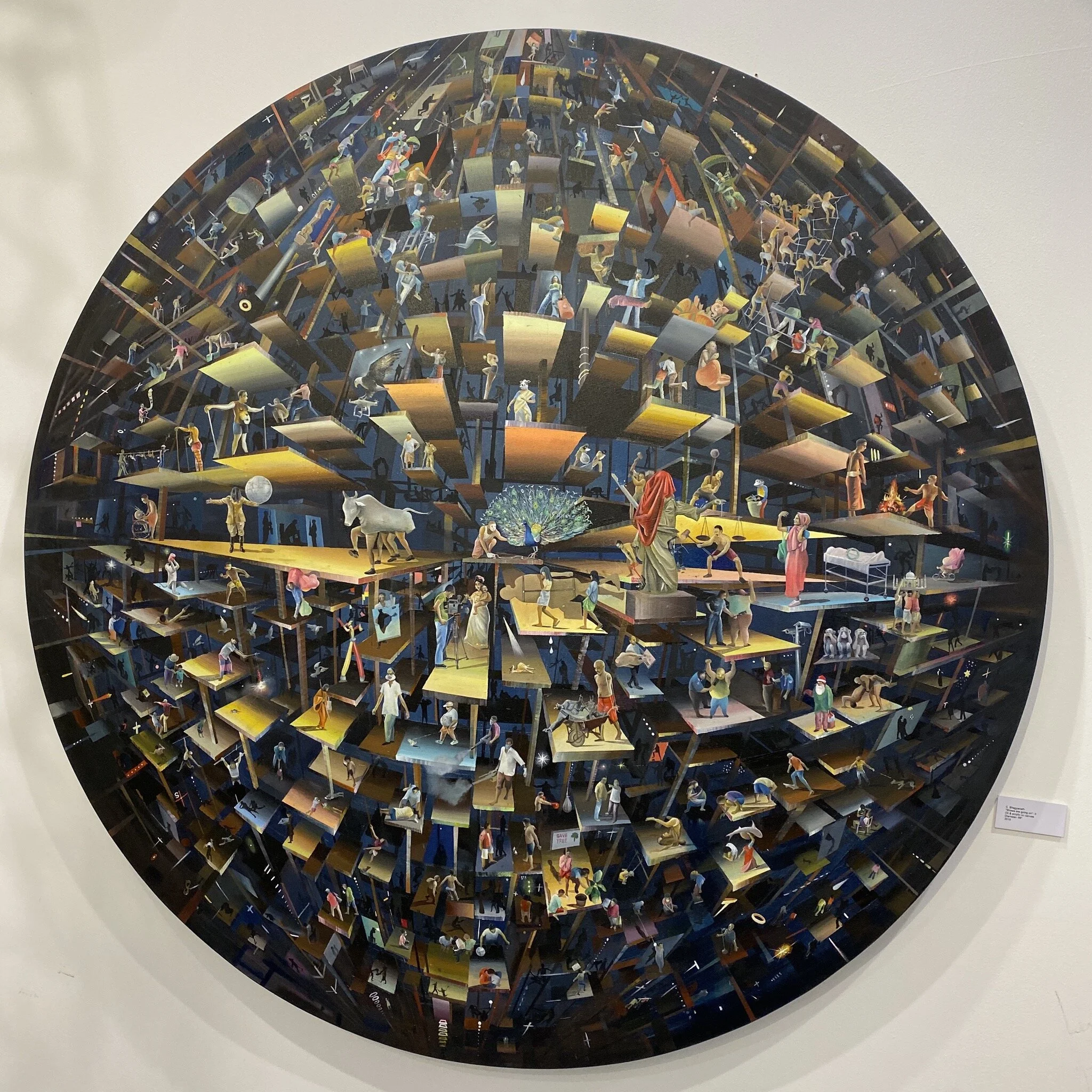 For many of the contemporary works, a uniting thread was a call for peace, of protest and empathy through art. What Dhasan saw in the concept of the smallest entity of nothingness was captured by Ankon Mitra is the macro-size of the universe, the living cosmos in his The Parting of Galaxies. Soma Das focused on environmental and water issues in Stupa, while Baaraan Ijlal collected stories to make the individual universal in her Hostile Witness series.