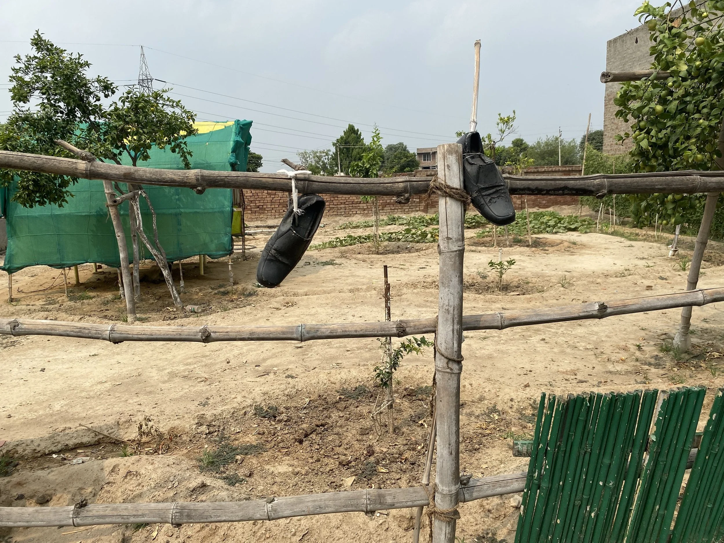 They stop where the path opens out. There are only one or two barren jamun trees left, set far apart, their branches thin. Nothing marks the place. Raju looks up, then down again, uninterested. Hira does not say anything.